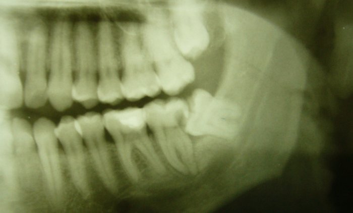 Im Kiefer auf halbem Weg hängengebliebene Weisheitszähne können zusammen mit dem jeweiligen Nachbarzahn hygienisch derart ungünstige Schlupfwinkel für Speisereste und Zahnbeläge bilden, dass beide Zähne in kürzester Zeit kariös werden.